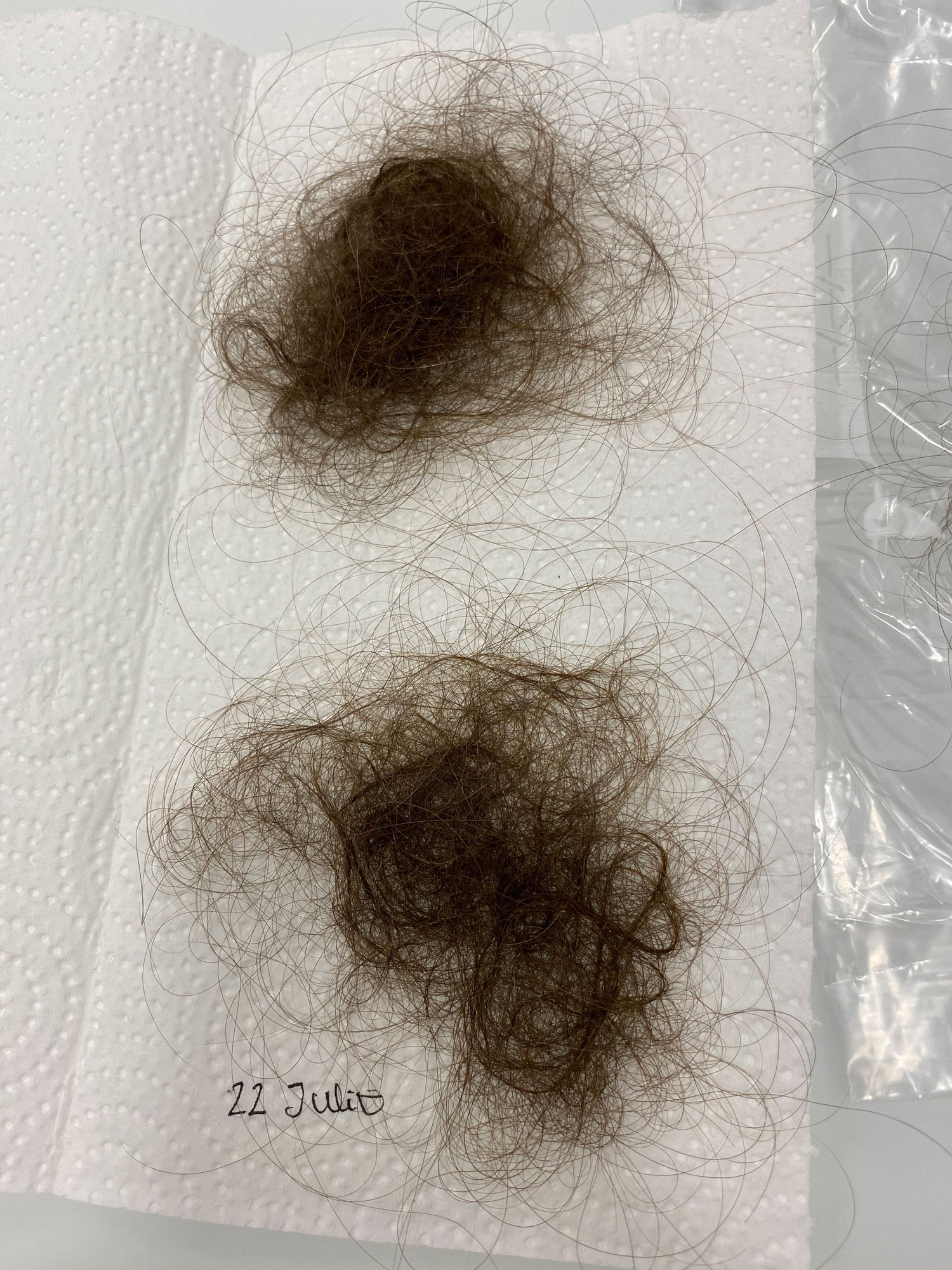 Con el efluvio telógeno agudo es habitual notar una pérdida muy marcada del cabello, dejando pelos aislados o mechones en la ducha, lavabo, sofá, etc. La caída será todavía más alarmante cuando el cabello sea largo y oscuro, ya que su presencia será más evidente. Se acompaña de una disminución del volumen de la melena, que puede notarse al recogerse el pelo con una coleta. En los casos más acentuados se pierde densidad capilar dejando entrever el cuero cabelludo al “clarear”.